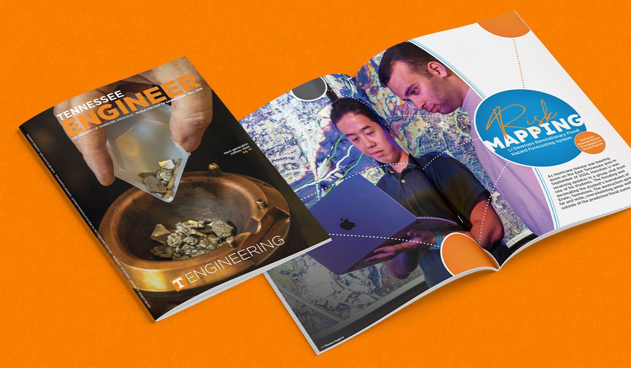 Tennessee Engineer is published in the spring and fall by the University of Tennessee, Knoxville, Tickle College of Engineering for alumni, faculty, staff, and friends of the college. To contact the college’s communications office, please email tce@utk.edu.
